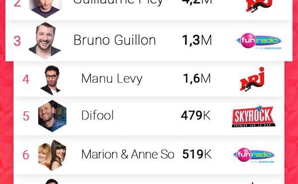 NRJ est aussi la première radio de France sur les réseaux sociaux. Manu, Cauet et Guillaume Pley sont le Top 5 des animateurs les plus populaires. Sébastien Cauet rafle la première place en matière d'influence sur le digital avec un reach de 8.2 millions d'internautes selon un classement généré à partir de la technologie Vidclust Leaderboards.