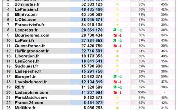 Deux sites radio dans le Top 25 des sites d'actualités