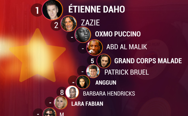 Le classement des personnalités de la musique invitées à la radioLe 10/12/2015 à 08:40