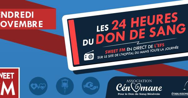Vendredi 20 novembre, Sweet FM, l’Établissement français du sang et l’association Cénomane pour le don de sang bénévole s’associent pour organiser les 24 heures du don de sang. Pendant une journée entière, les studios de la radio seront déplacés dans les locaux de l’EFS au Mans.