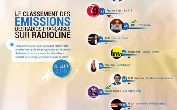 Les grilles d’été des radios bousculant une partie des programmes habituels, Radioline a choisi en juillet d’établir le classement des émissions les plus écoutées, tous horaires confondus. Sans surprise, les matinales restent les shows les plus écoutés par les Français au début de l’été.