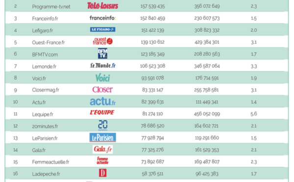 ACPM : deux radios dans le top 20 des sites et applicationsLe 04/03/2021 à 13:25