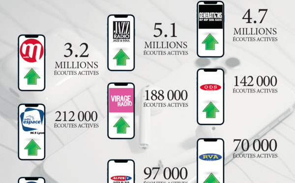 Selon l’ACPM/OJD publiée pour la période d’octobre 2020, l’écoute des radios d’Espace Group par les canaux digitaux est en forte hausse. Le top 3 des radios les plus écoutées du groupe en octobre se compose de Jazz Radio (5.1 millions d’écoutes actives), Generations (4.7 millions) et M Radio (3.2 millions).
