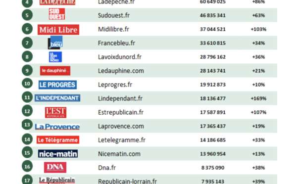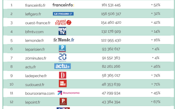 La fréquentation des sites et des applications n’a jamais été aussi forte ces derniers mois notamment en raison de la conjoncture particulière. Ce mois de novembre, le niveau reste très élevé, par exemple, les visites pour les sites d'Actualités et d'Information Généraliste sont supérieures de + 46% par rapport à novembre 2019.