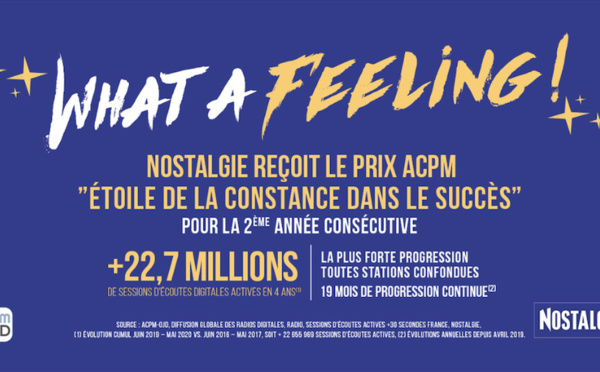 Mercredi 9 décembre, Nostalgie a été récompensée, dans le cadre de l’Innov ’Audio Paris 2020 par les Étoiles Radio de l’ACPM et a remporté pour la deuxième année consécutive, le prix de l'Étoile de la constance dans le succès pour ses performances et sa forte progression d’audience digitale.