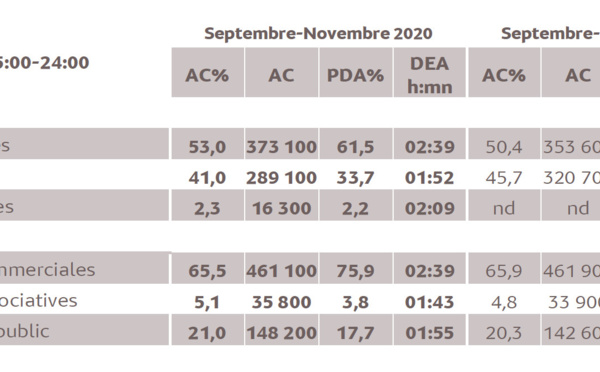 Les prochains résultats de l'enquête Médiamétrie 126 000 Radio paraîtront le jeudi 14 janvier 2021 à 8h et concerneront les audiences de la période comprise entre novembre et décembre 2020. Une semaine après, jeudi 21 janvier à 09h, Médiamétrie dévoilera les résultats de la 126 000 IDF pour la période comprise entre septembre et décembre 2020.