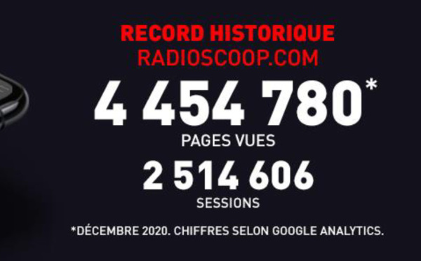 En décembre 2020, Radio Scoop enregistre un nouveau record historique de 4 454 780 de pages vues1 sur son site internet radioscoop.com et ses nouvelles applications mobiles (Androïd et iOS). Ce chiffre marque une progression de 89.53 % par rapport à décembre 2019.
