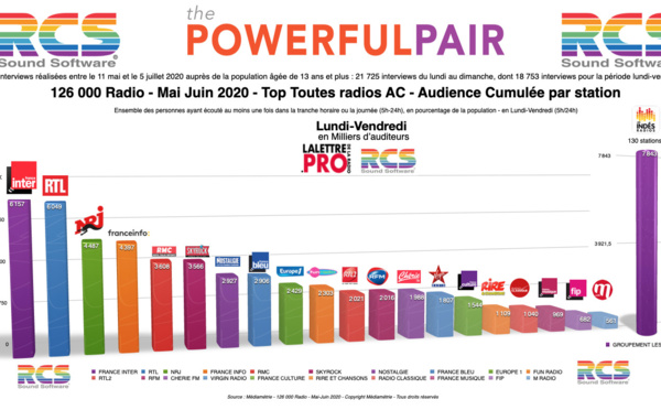 Diagramme exclusif LLP/RCS - TOP radios en Lundi-Vendredi - 126 000 Mai-Juin 2020