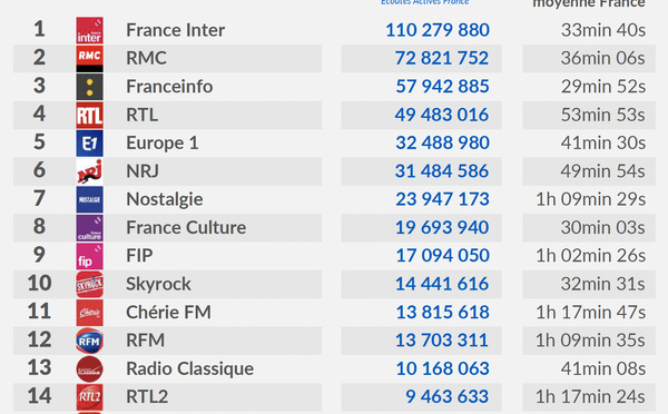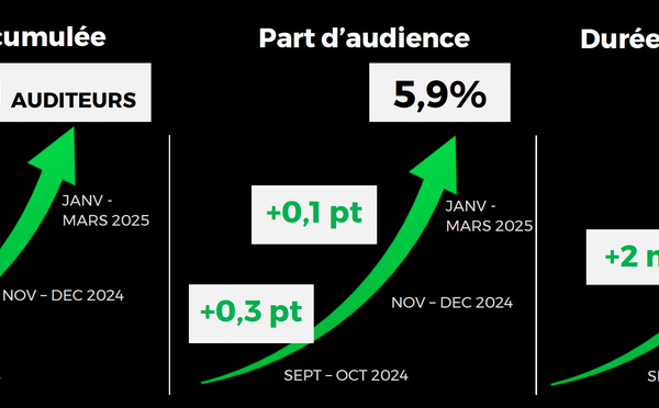 L'ACPM a publié les chiffres d'écoute digitale pour le mois d’avril 2025, confirmant une tendance haussière sur l’ensemble du secteur. La durée moyenne d'écoute des radios certifiées a progressé de deux minutes en un an, atteignant désormais 43 minutes quotidiennes en moyenne. Ce chiffre agrège les performances de 1 459 radios...
