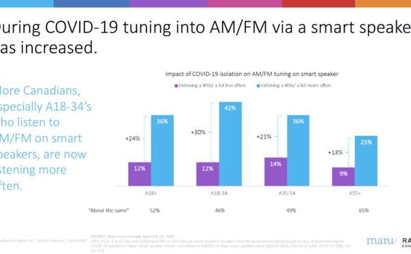 En mars et avril, les niveaux d'audience de la radio sont restés élevés au Canada malgré la crise sanitaire et le confinement. La radio a conservé une portée de plus de 80% entre le 16 mars et le 26 avril 2020 et continue de fournir un lien fort avec la communauté.