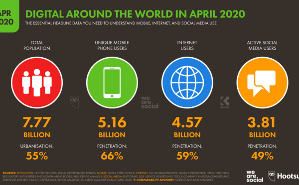 Hootsuite, le leader mondial de la gestion des médias sociaux, et l’agence We Are Social, dévoilent les nouvelles habitudes des internautes depuis la crise sanitaire du coronavirus. Au niveau mondial, l’adoption du numérique continue sa progression : 76% des personnes interrogées déclarent passer plus de temps sur leur smartphone dont 4 femmes sur 5.