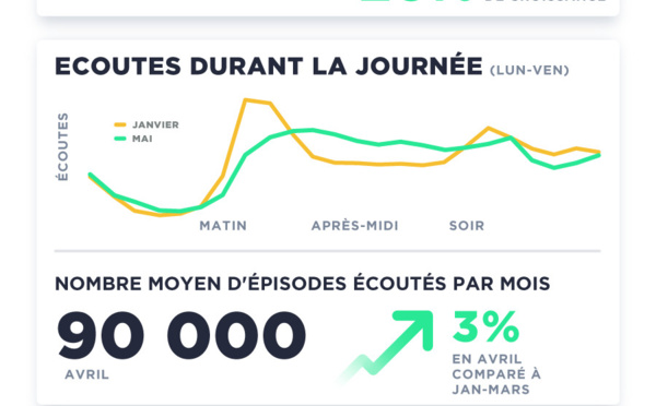La plateforme de podcast affiche, depuis le 1er janvier 2020, une augmentation de +20% de ses écoutes mensuelles comparée au dernier trimestre 2019. Selon la deuxième édition du baromètre des podcasts natifs publié par Acast pendant le confinement, le nombre d’écoutes moyen a progressé de 30% pour chaque auditeur...