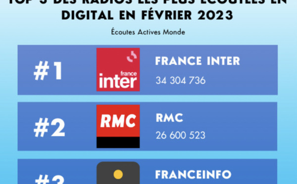L’ACPM a publié en début d'après-midi les résultats d’audience digitale des radios pour les mois de juillet et août 2025. Plus de 1 500 stations ont été certifiées, représentant un volume d’écoute de 268 millions d’heures en France. France Inter conserve la première place du classement, devant RMC et franceinfo...