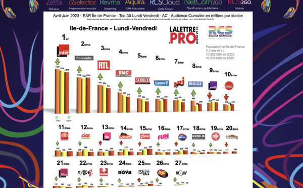 Top 30 des radios en Ile-de-France - EAR Île-de-France - Diagramme exclusif LLP/RCS GSelector-Zetta