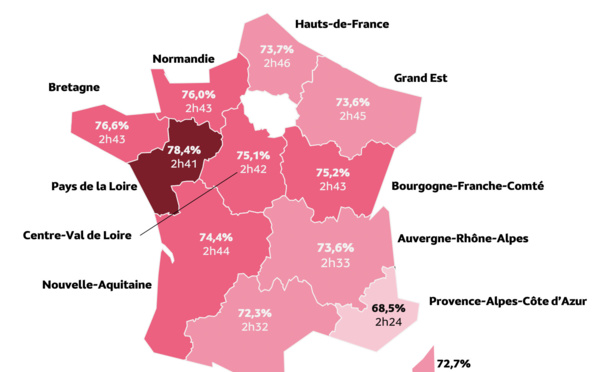 Voilà, cette fois-ci, vous pouvez partir en vacances ou vous donnez à fond pour préparer la prochaine saison 23-24. Ce matin, Médiamétrie a dévoilé la dernière étude de la saison : l'EAR local qui compile les résultats des radios dans les agglomérations et les départements. Parmi les 12 régions, la région Pays de la Loire arrive en tête avec 78.4% d’auditeurs quotidiens, suivie de la Bretagne (76.6%).