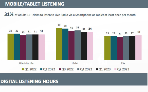 Au 2e trimestre 2023, 49.5 millions d'adultes, soit 88 % de la population britannique de 15 ans et plus ont écouté la radio au Royaume-Uni. Le nombre total moyen d'heures d'écoute hebdomadaire de la radio pour ce trimestre est de 1.016 milliard d'heures. Le DAB représente 59 % de l'écoute numérique...