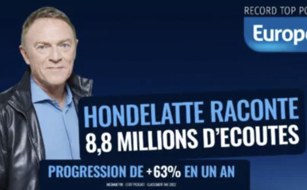 Avec 16 millions d’écoutes mensuelles, Europe 1 confirme "la puissance de ses productions (+ 19% en 1 an) et son attractivité en matière de grands récits, d’histoire mais aussi d’humour" indique la station portée par le succès de l'émission de Christophe Hondelatte.