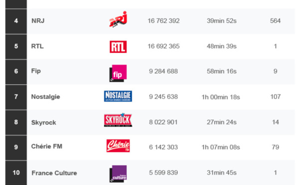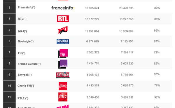 Comme chaque mois, les abonnés du mensuel La Lettre Pro de la Radio peuvent prendre connaissance d'un classement original, celui généré sur l'application Radioline. franceinfo, RMC, RTL, France Inter Inter et Europe 1 occupent les 5 premières places de ce top 50 exclusif...