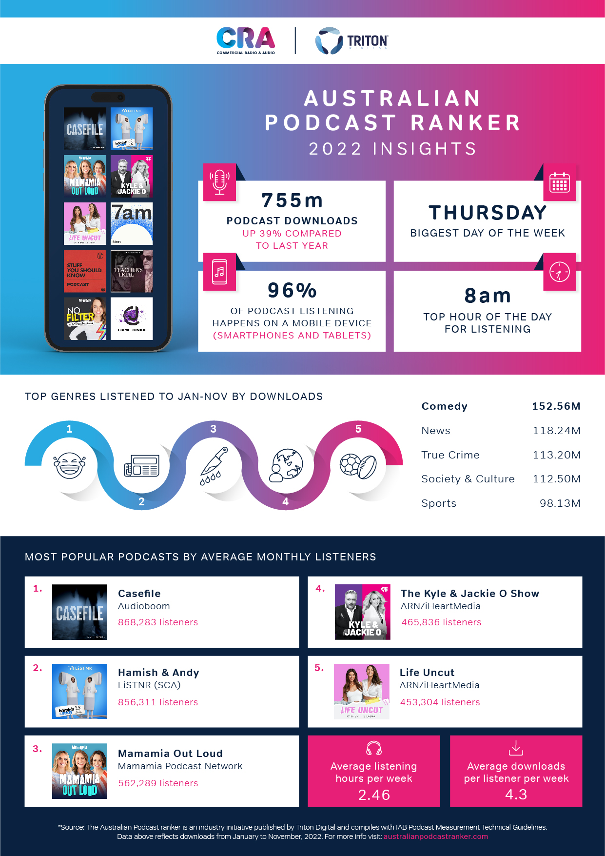 Australie : l'auditeur a téléchargé 4.3 podcasts par semaine en 2022
