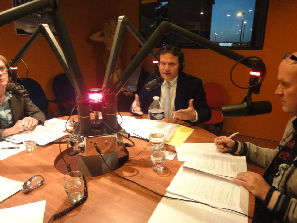 Azur FM s'implique énormément dans la campagne des municipales. Ici, un débat entre les trois têtes de liste de Sélestat: Marcel Bauer (hor champs), Caroline Reys, et Stéphane Klein (au centre), animé par Franck Jehl (à droite).