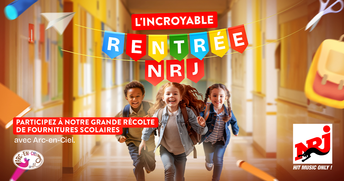 En Wallonie, un enfant sur quatre grandit dans la pauvreté, et à Bruxelles, ce chiffre grimpe à quatre sur dix. La rentrée scolaire représente souvent un défi de taille pour ces familles en difficulté. C’est pourquoi, cette année, NRJ appelle ses auditeurs à se mobiliser pour la plus grande collecte de matériel scolaire jamais réalisée dans le pays. Chaque auditeur est invité à trier son matériel scolaire et à ne conserver que le neuf ou le quasi neuf. Tous les types de fournitures sont les bienvenus, à l'exception des classeurs : crayons gris et de couleur, marqueurs, surligneurs, stylos, taille-crayons, règles, gommes, ciseaux, cahiers, plumiers, cartables, et bien plus encore. Les auditeurs peuvent séposer leurs dons dans les magasins Fox & Cie et Maniet Luxus situés en Wallonie et à Bruxelles.
