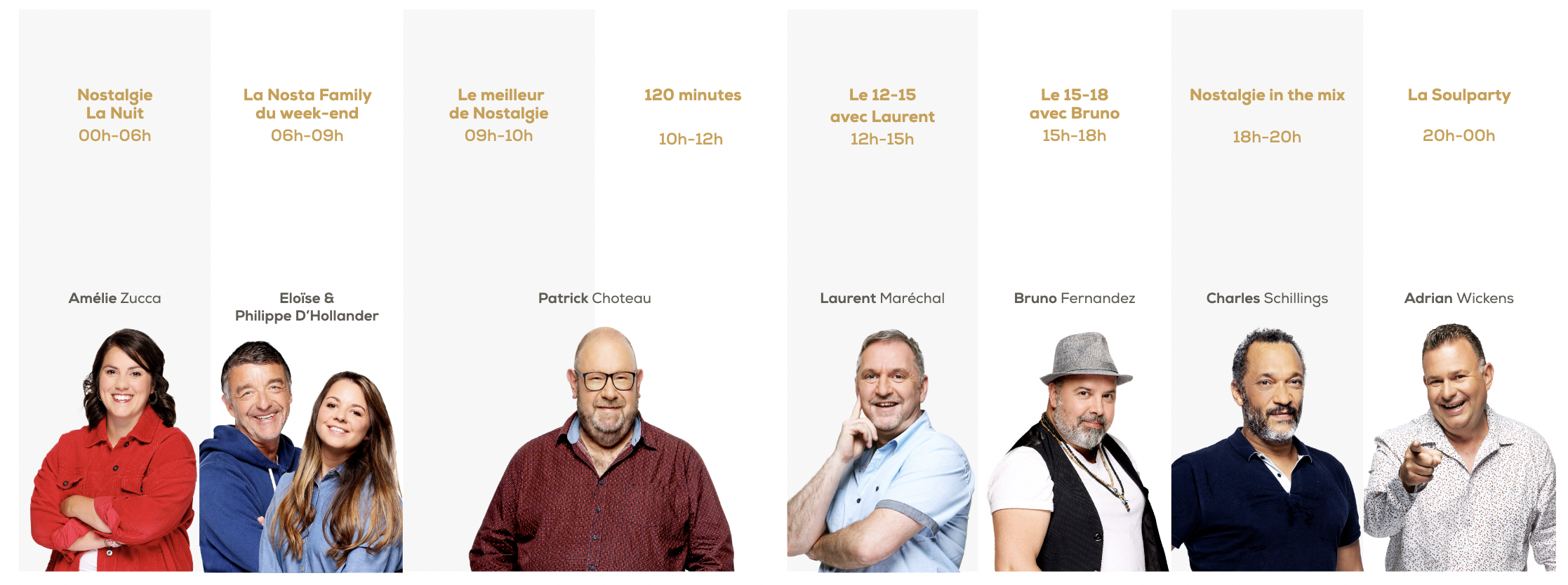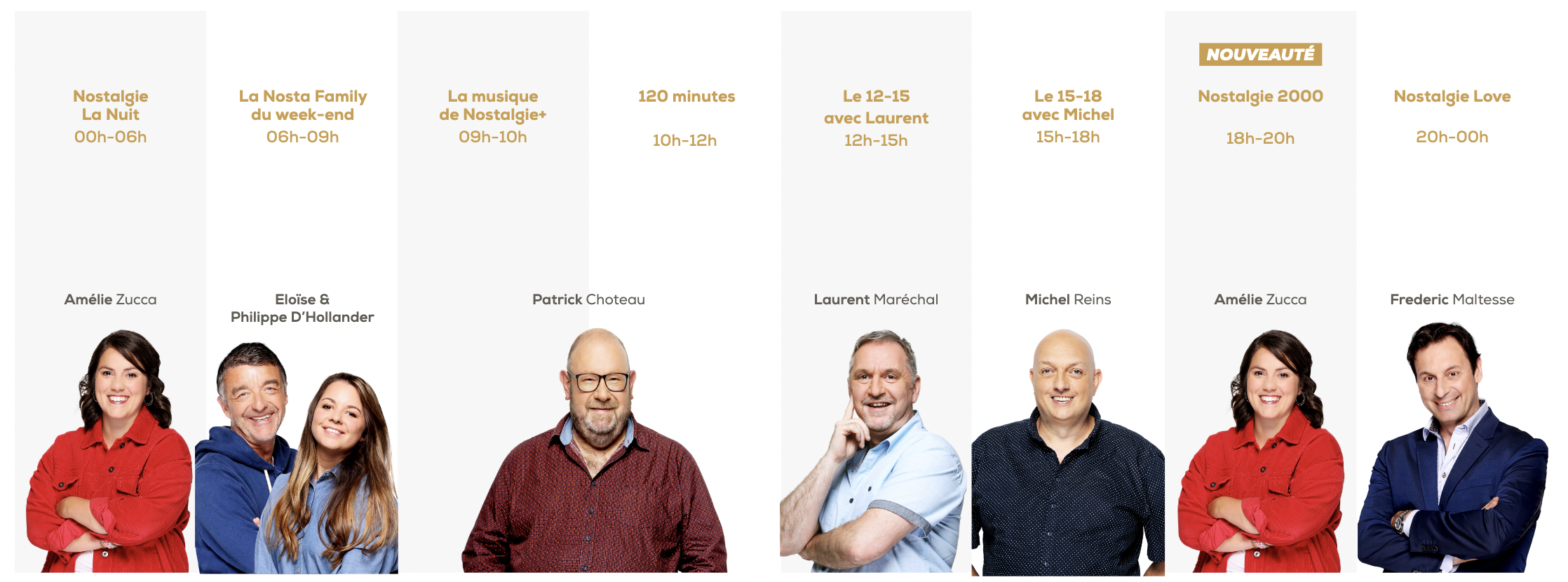"Nous avons décidé d’apporter des changements importants dans notre grille, des adaptations conséquentes dans nos contenus et nos différentes offres tant digitales que linéaires. Plus divertissante, plus moderne, plus engagée dans son époque, Nostalgie ose se remettre en question et propose la rentrée la plus riche en nouveautés depuis très longtemps" explique Jean-François Pottier, directeur des programmes de Nostalgie Belgique. "Je voudrais insister sur la place particulière qu’ont les auditeurs dans nos différentes réflexions. Cette nouvelle grille des programmes prouve plus que jamais qu’ils·elles sont au centre de nos préoccupations, que ça soit par le biais de l’interactivité à l’antenne, via les réseaux sociaux ou par le nombre d’actions de proximité que nous allons réaliser et faire croître encore".