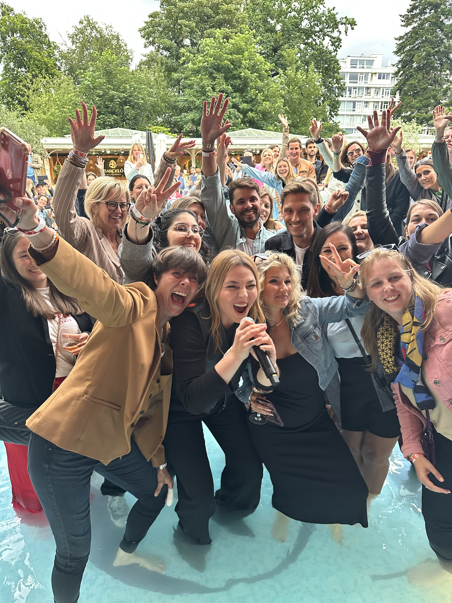 La soirée s'est terminée de manière inoubliable par une baignade dans la piscine de l'établissement. En pleine interprétation de son titre "Recommence-Moi", Santa a rejoint quelques auditeurs dans la piscine, le tout "dans une ambiance de folie".