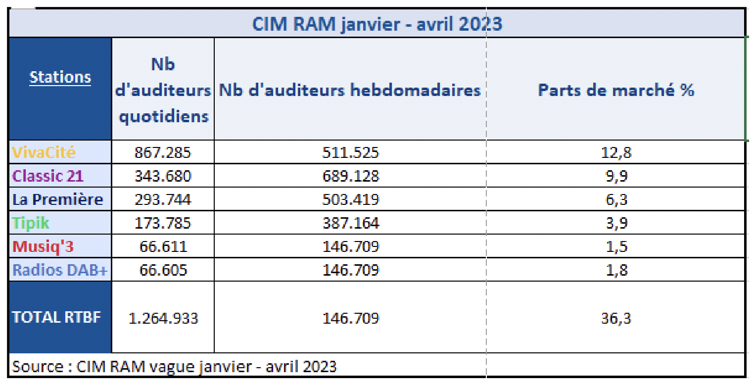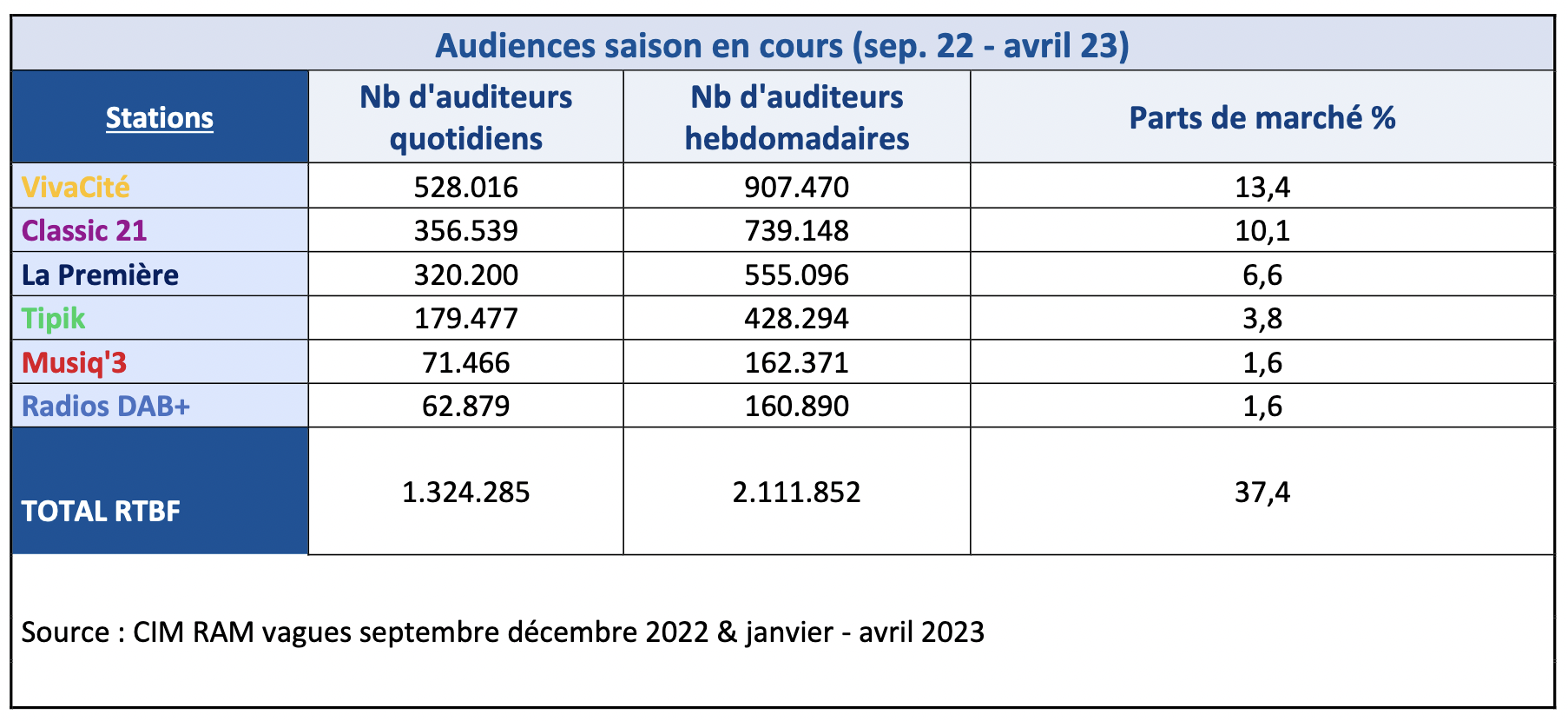 Les matinales de VivaCité et de La Première se portent bien. Sur la saison en cours, La Première est ainsi leader sur Bruxelles avec 15.9% de pda tandis que VivaCité est leader en Wallonie avec 19.3% de pda.
