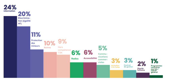 média concerné par l’activité du SI (75% en 2019). La radio représente 26% des plaintes (12% en 2019) et les contenus en ligne, 15% (6% en 2019).