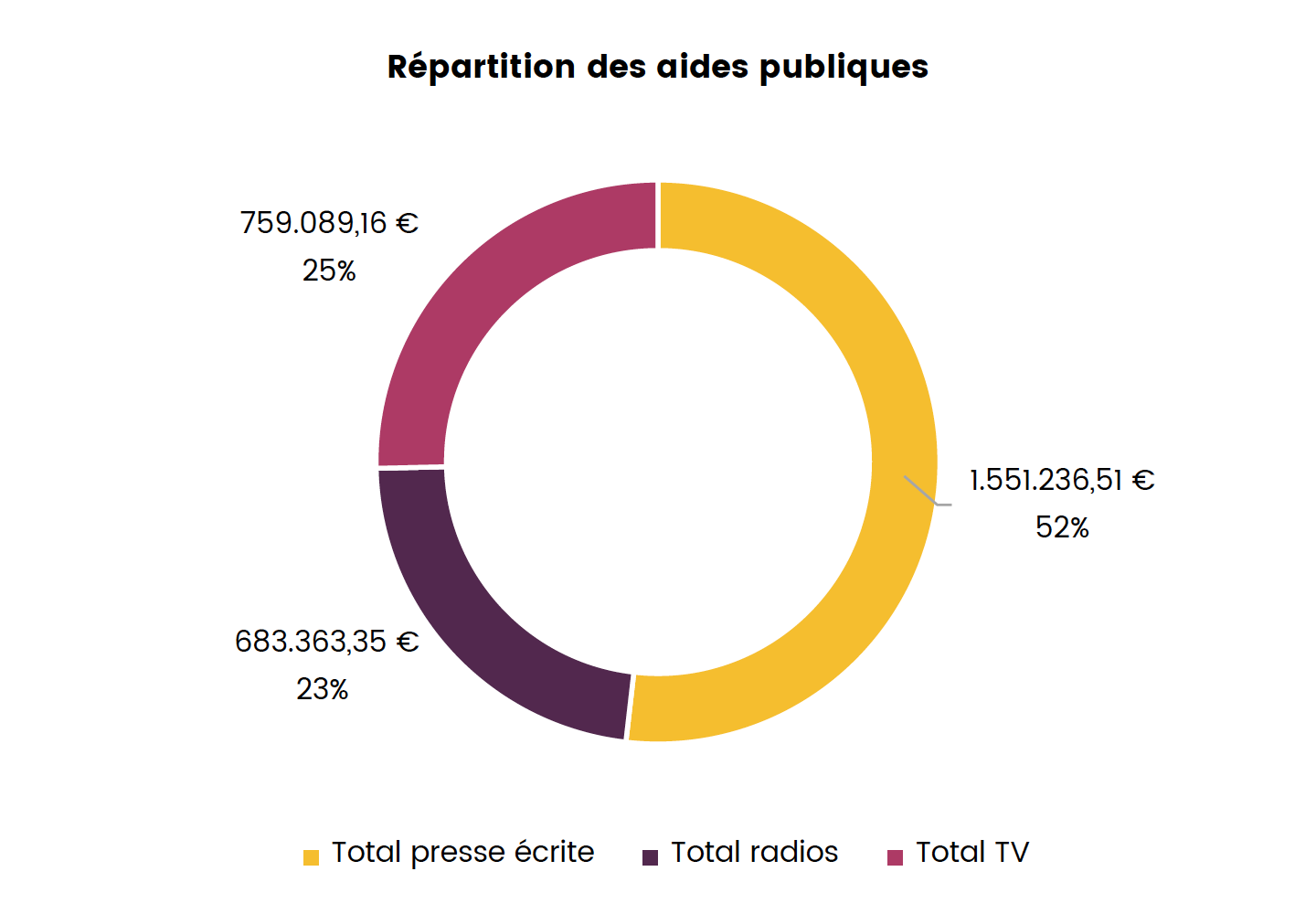 Le rapport se penche enfin sur l’impact de la crise en matière d’emploi au sein des médias et sur les aides financières qui ont été attribuées au secteur à ce jour. Depuis le début de la crise, 2 993 689.02 € ont été octroyées au secteur médiatique de la Fédération Wallonie-Bruxelles, dont 25% en télévision, 23% en radio et 52% en presse écrite.