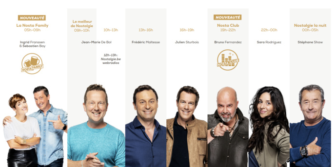 Parmi les nouveautés sur Nostalgie Belgique, il faudra retenir l'arrivée d'un nouveau duo à la matinale avec Ingrid Franssen et Sébastien Bay, un nouveau rendez-vous pour Bruno Fernandez, animateur historique de la station qui prend les commandes du début de soirée ainsi que "Les 20 ans de la Story" avec la sortie d'une BD et une journée événement en octobre.
