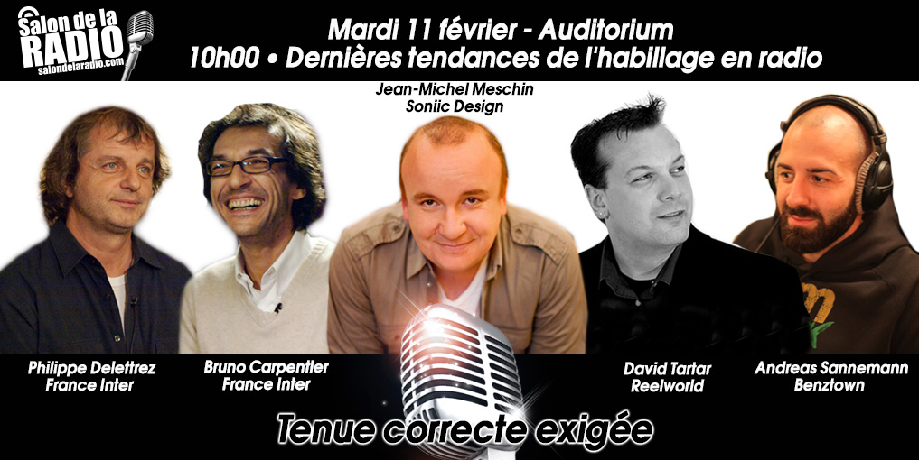 Une conférence programmée ce mardi 11 février de 10h à 11h dans l'Audiotrium de l'Etoile avec Bruno Carpentier, responsable de la couleur d'antenne de France Inter, Philippe Delettrez, compositeur et arrangeur de l'habillage de France Inter, Jean-Michel Meschin, producteur et consultant sonore à Soniic Design, Andreas Sannemann, PDG de Benztown et David Tartar responsible France de Reelworld.