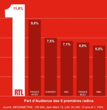 Avec 11.8% de part d'audience (+0,6 point sur un an), RTL domine cette 126 000 de Médiamétrie. La radio enregistre aussi la meilleure durée d'écoute, avec 2h20 chaque jour et par auditeur. Des auditeurs qui sont nombreux à l'écouter : ils sont 6.5 millions chaque jour soit plus de 543 000 gagnés en un an.