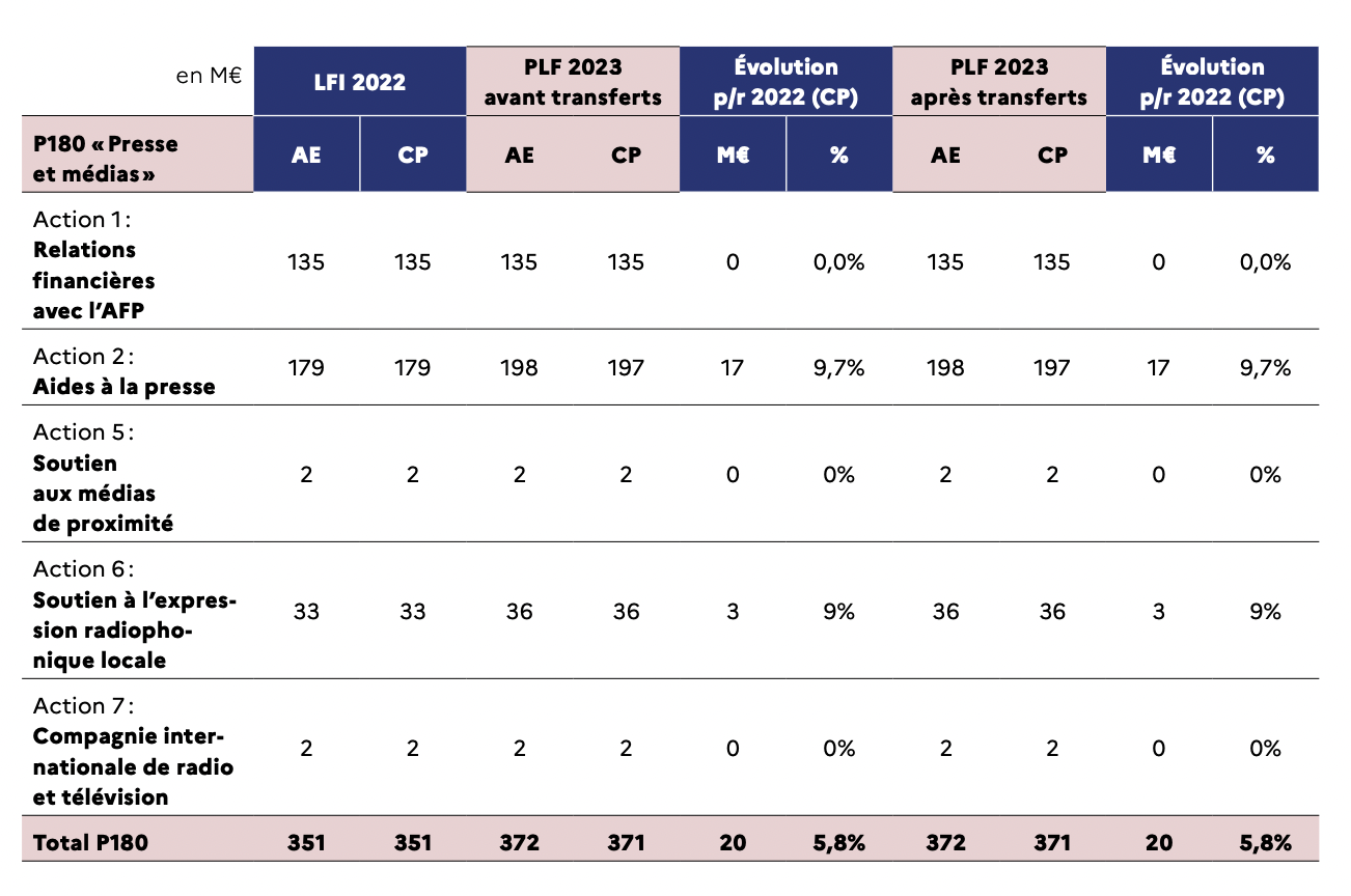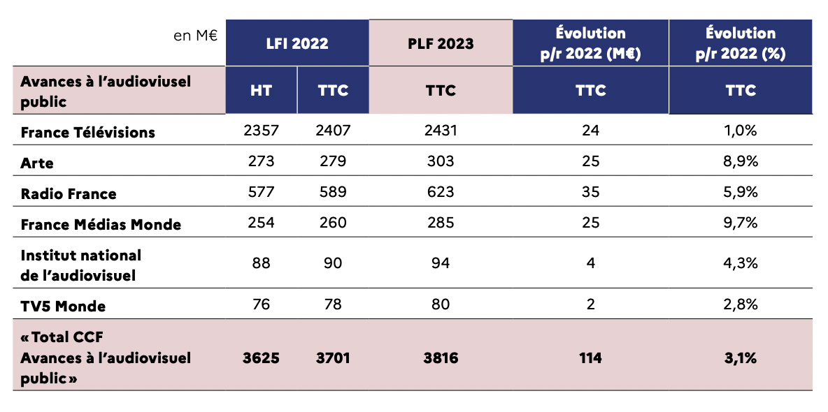 "Ce montant contribue à couvrir les effets de l’inflation sur les dépenses des entreprises de l’audiovisuel public et tient compte des effets fiscaux consécutifs à la réforme des modalités de financement public du secteur, votée par le Parlement en août dernier" explique le ministère. Le Gouvernement veut développer 4 actions : répondre au besoin exprimé par les Français que les médias soient plus proches de leurs préoccupations, de leur vie locale, de leur quotidien en métropole comme en Outre-mer (en intensifiant notamment les liens entre France Bleu et France 3), renforcer l’information de service public pour en faire une référence incontestable par sa qualité, sanctuariser le rôle central du secteur dans la culture et la création et développer l’offre éducative et les contenus destinés à la jeunesse.
