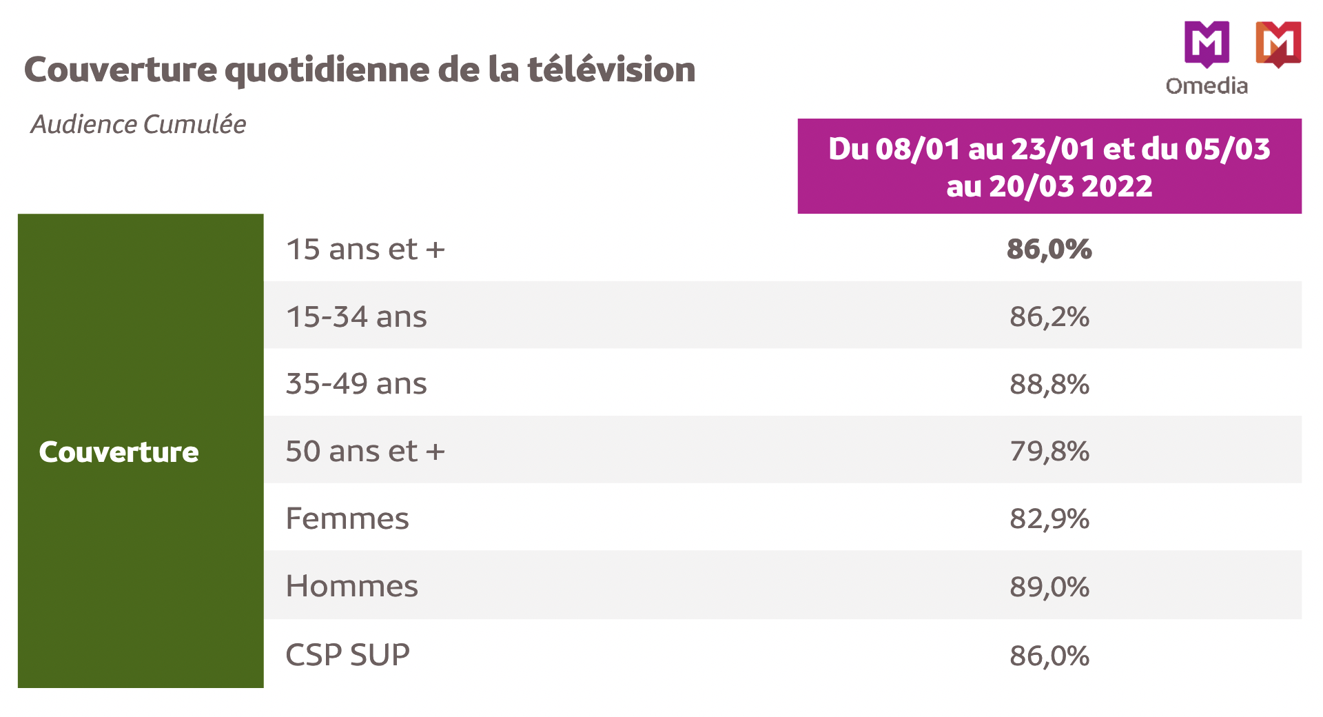 Dans la lignée des audiences mesurées jusqu’à présent annuellement par Médiamétrie et Omedia, la mesure d’audience de la télévision au Cameroun repose désormais sur 6 vagues par an. Cette mesure a pour objectif de fournir aux chaînes de télévision, aux agences de communication et aux annonceurs, les données nécessaires au pilotage publicitaire et éditorial de leurs offres.