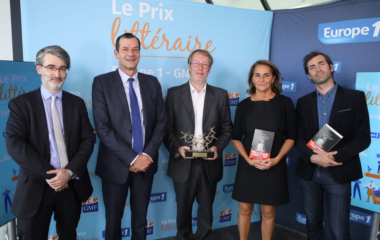 Edouard Vieillefond, Directeur général de GMF Assurances, Thierry Derez, Président de GMF et Président-Directeur général du groupe Covéa, Carl Aderhold, écrivain et lauréat du Prix Littéraire Europe 1 – GMF, Constance Benqué, Présidente de Lagardère News et Nicolas Carreau, spécialiste littéraire d’Europe 1. © Frédéric Bukajlo – Capa Pictures – Europe 1