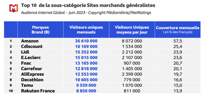 Médiamétrie et Médiamétrie//NetRatings - Audience Internet Global - Tous lieux de connexion - France - Juin 2023 - Base : 2 ans et plus Copyright Médiamétrie - Tous droits réservés