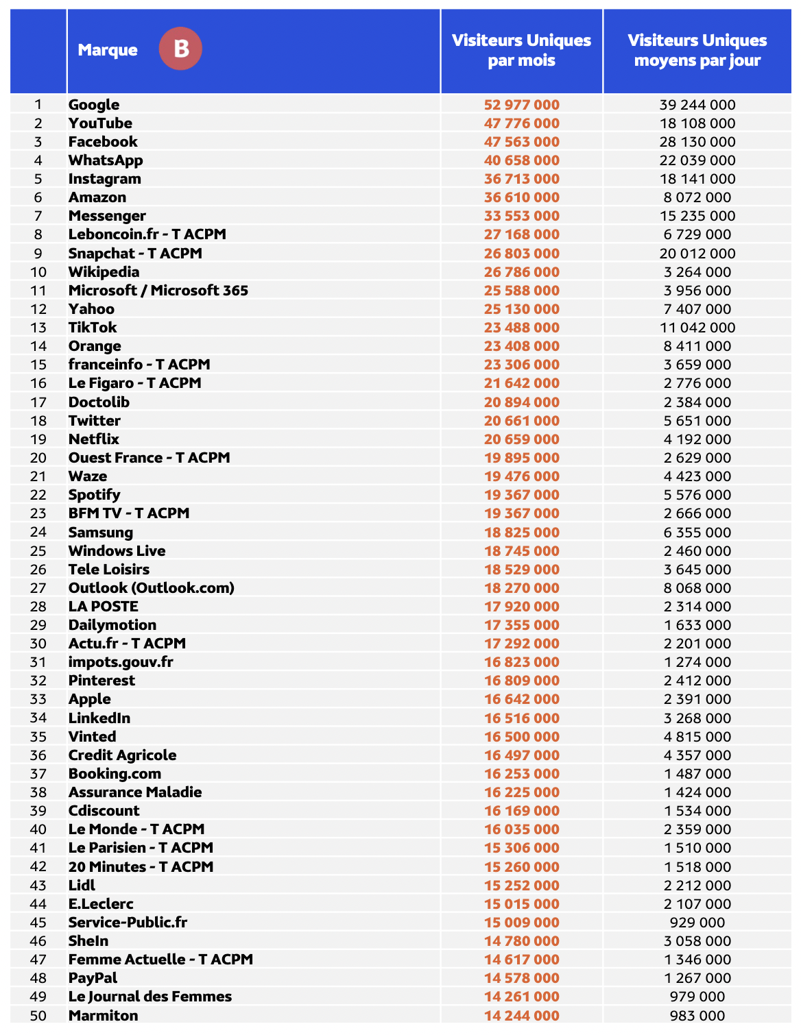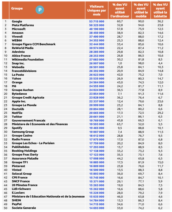 Top 50 des marques les plus visitées en France