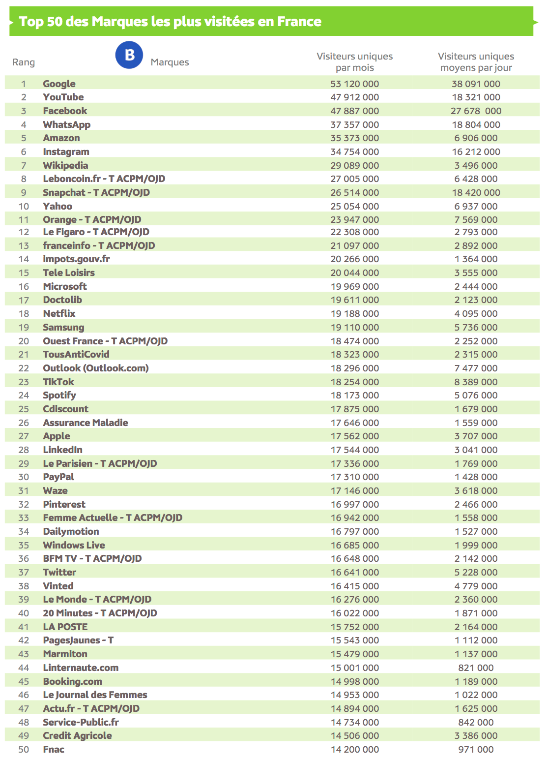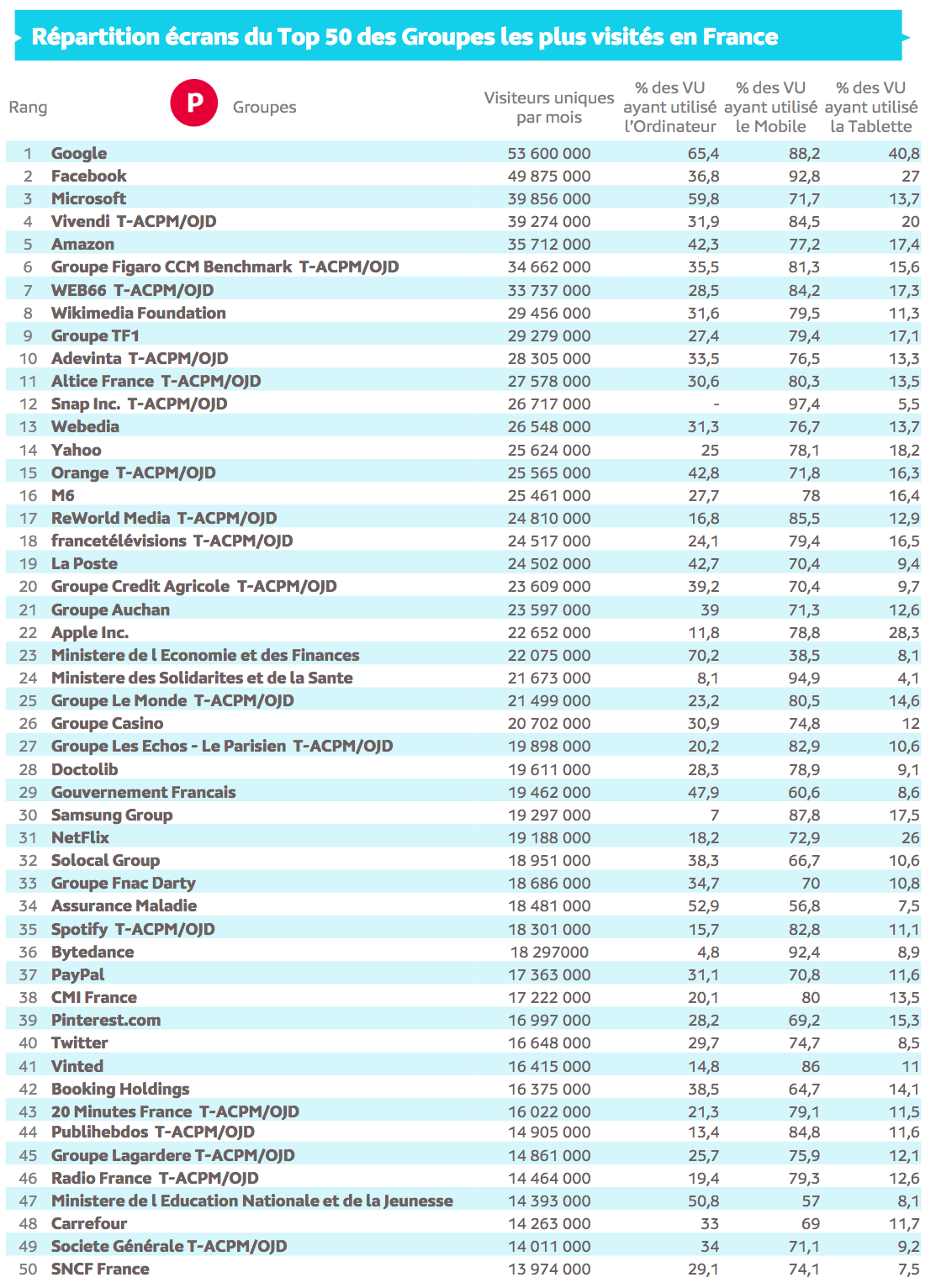 Source : Médiamétrie et Médiamétrie//NetRatings - Audience Internet Global - Tous lieux de connexion - France – mai 2022 - Base : 2 ans et plus Copyright Médiamétrie - Tous droits réservés