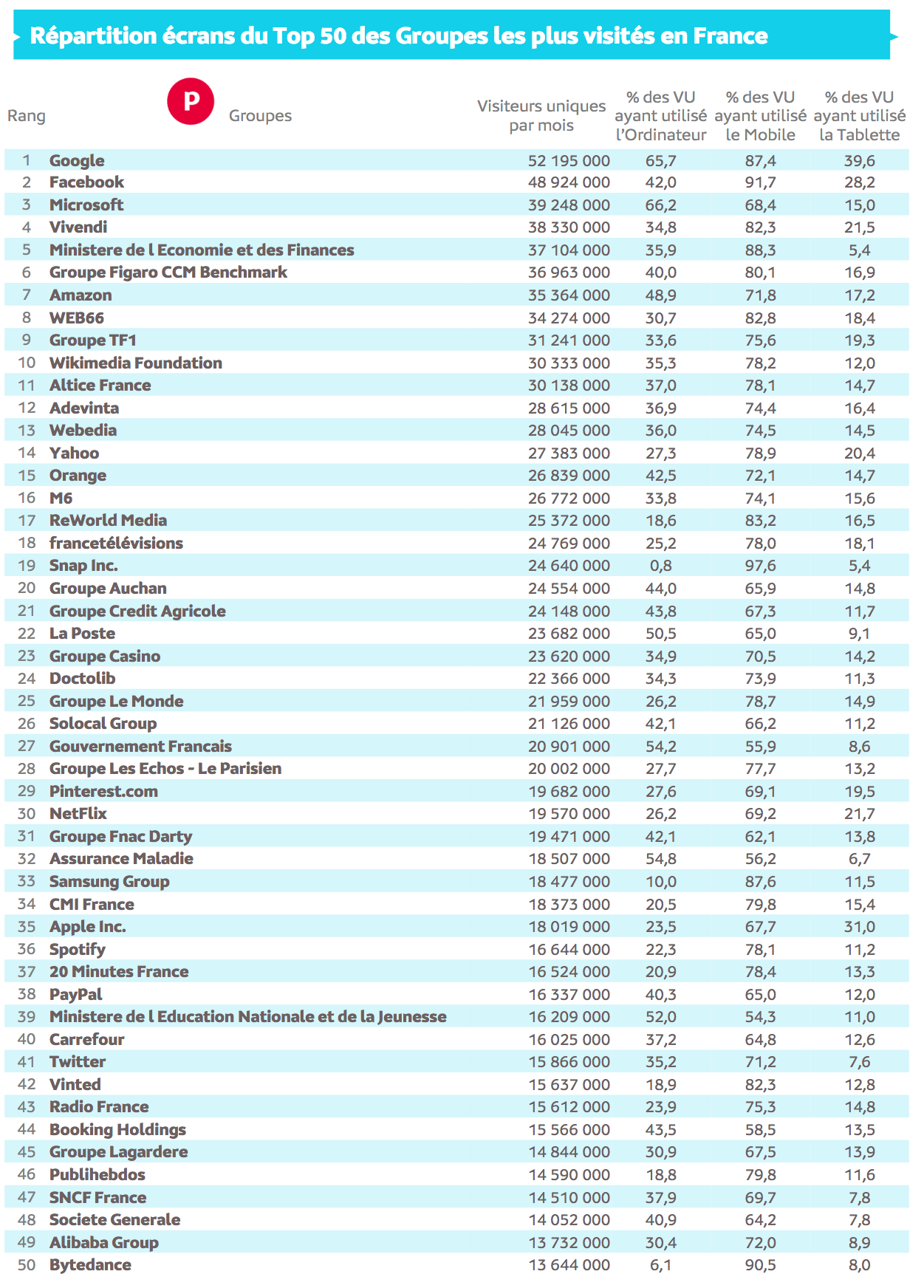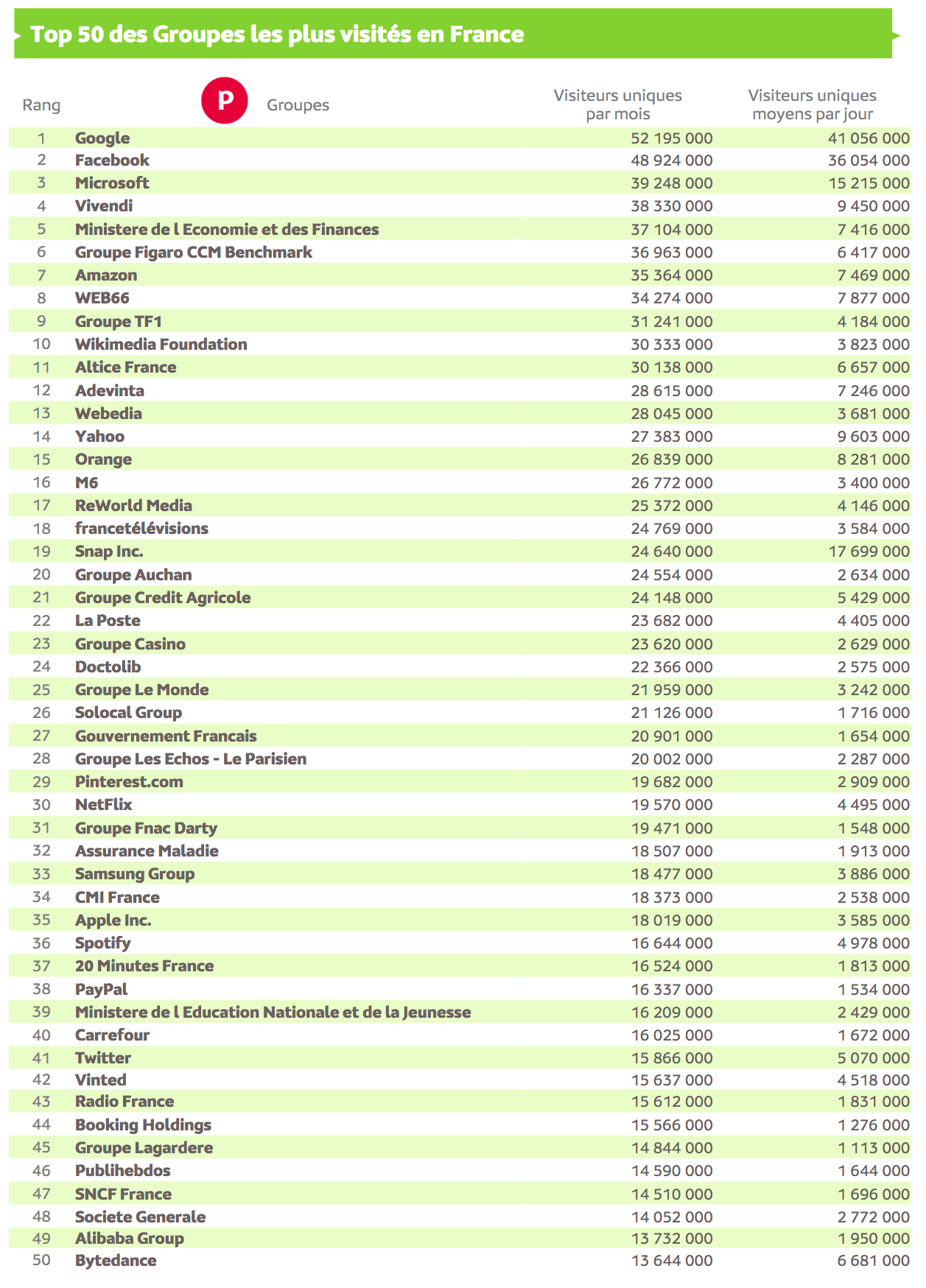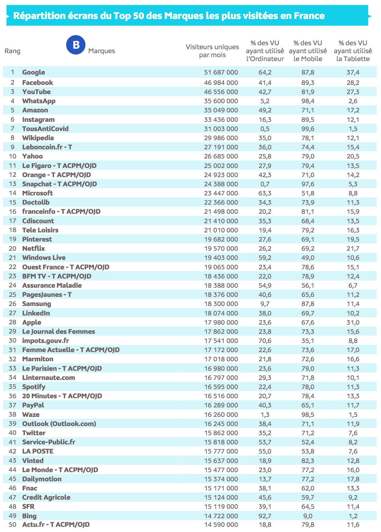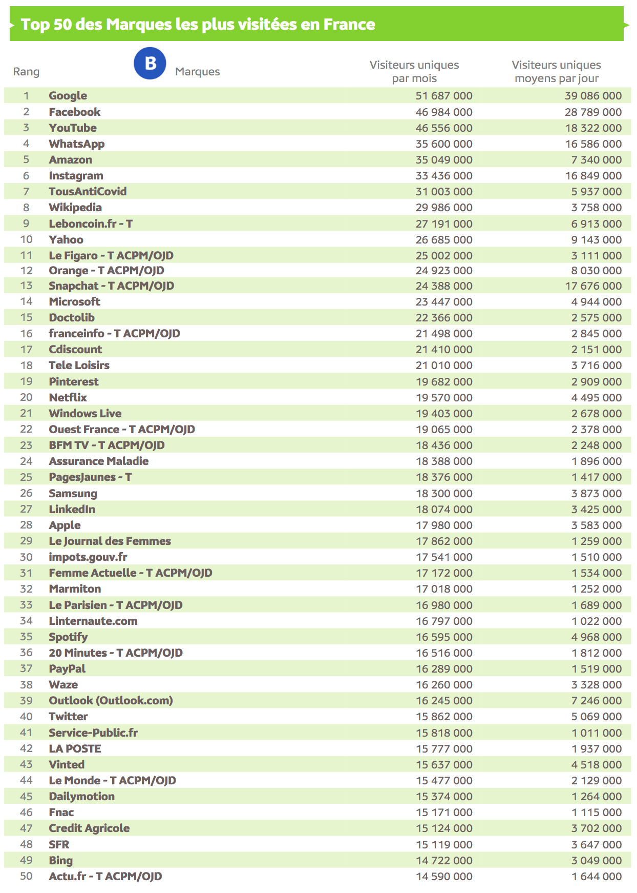 Source : Médiamétrie et Médiamétrie//NetRatings - Audience Internet Global - Tous lieux de connexion - France – Septembre 2021 - Base : 2 ans et plus Copyright Médiamétrie - Tous droits réservés