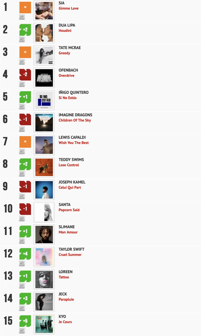 Calculé à partir des diffusions sur plus de 200 radios, l'intérêt et l'originalité de ce nouveau classement c'est surtout qu'il ne prend pas en compte l’audience des radios. "Un programmateur = 1 voix", ce qui donne ici un avantage à l’humain sur la machine et les algorithmes. Un classement en partenariat avec La Lettre Pro de la Radio...Découvrez la suite du classement Radio Buzz 40 - La Lettre Pro du 30 décembre 2023 et les autres titres ICI. Également disponible, la "Meilleure entrée, la "Meilleure progression" et, forcément, la plus "grosse gamelle" de la semaine.
