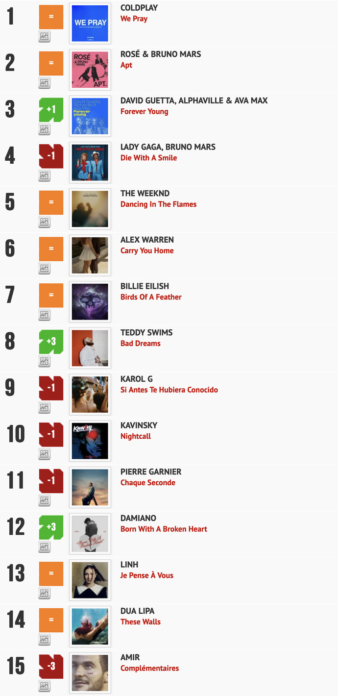 Calculé à partir des diffusions sur plus de 200 radios, l'intérêt et l'originalité de ce nouveau classement c'est surtout qu'il ne prend pas en compte l’audience des radios. "Un programmateur = 1 voix", ce qui donne ici un avantage à l’humain sur la machine et les algorithmes. Un classement en partenariat avec La Lettre Pro de la Radio...Découvrez la suite du classement Radio Buzz 40 - La Lettre Pro du 11 janvier 2025 et les autres titres ICI. Également disponibles, la "Meilleure entrée, la "Meilleure progression" et, forcément, la plus "grosse gamelle" de la semaine. Brulhatour est le rédacteur en chef du magazine La Lettre Pro de la Radio et le directeur associé... En savoir plus sur cet auteur