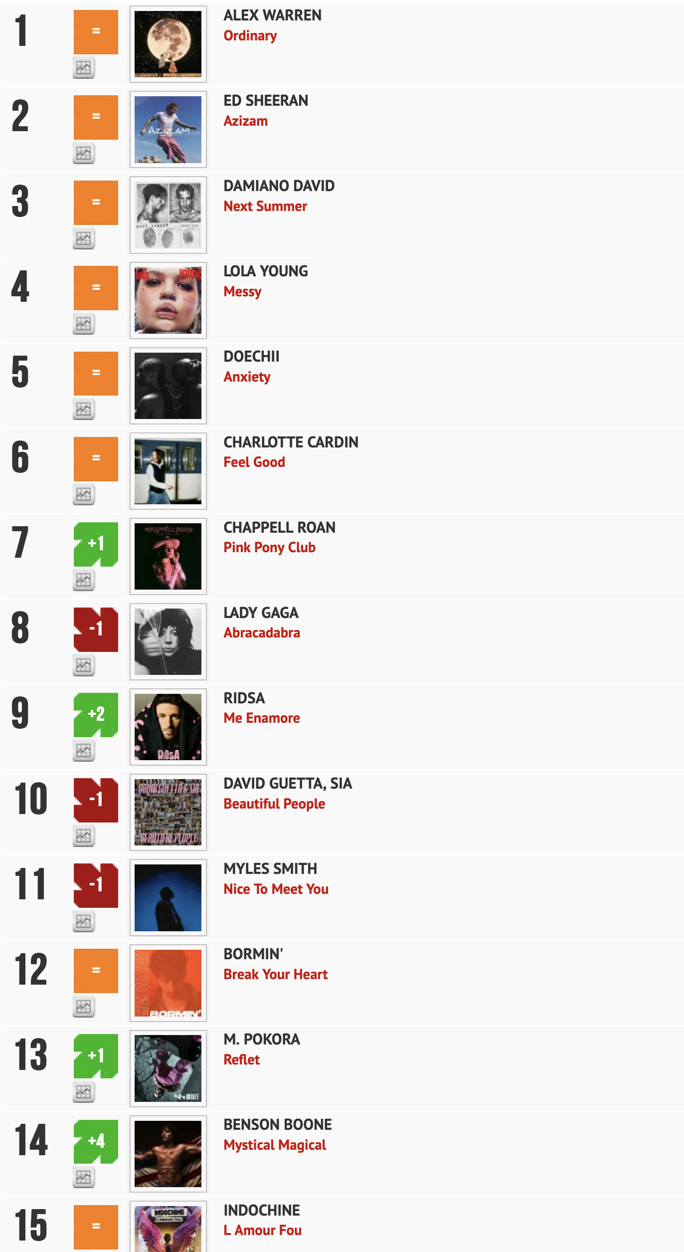 Calculé à partir des diffusions sur plus de 200 radios, l'intérêt et l'originalité de ce nouveau classement c'est surtout qu'il ne prend pas en compte l’audience des radios. "Un programmateur = 1 voix", ce qui donne ici un avantage à l’humain sur la machine et les algorithmes. Un classement en partenariat avec La Lettre Pro de la Radio...Découvrez la suite du classement Radio Buzz 40 - La Lettre Pro du 11 juillet 2025 et les autres titres ICI. Également disponibles, la "Meilleure entrée, la "Meilleure progression" et, forcément, la plus "grosse gamelle" de la semaine. Brulhatour est le rédacteur en chef du magazine La Lettre Pro de la Radio et le directeur associé... En savoir plus sur cet auteur