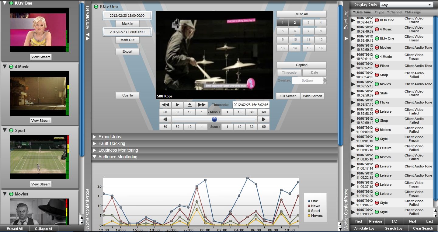 Le système est aussi capable grâce à un algorithme très puissant d’analyser des erreurs, vidéo figée, mire, absence d’audio ou de vidéo, fréquence et même absence/présence de logo défini.