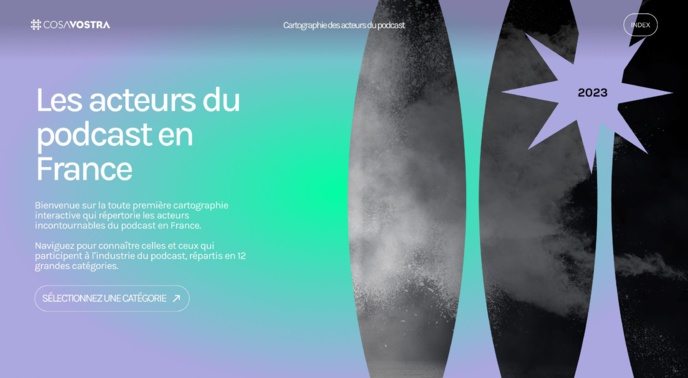 Sur cette nouvelle version, une sous-catégorie a fait son apparition : “les concours”, dont 9 sont déjà répertoriés. Près de 400 acteurs sont ainsi référencés, soit 150 de plus que sur l’édition de 2022. À noter que 22 acteurs référencés dans l’édition précédente ont disparu. Parmi les grandes tendances à retenir, plus d’outils techniques sont à disposition (retranscription, vidéo, bande sonore...), plus de curateurs qui se sont développés (concours, événement, formation, livre...), plus de nouveaux acteurs en région sont apparus et un constat : les médias créent de plus en plus de podcasts.