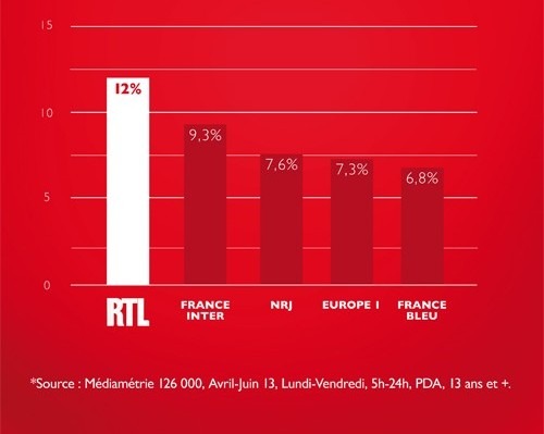 Pour RTL, le seul "critère pertinent" est celui de la part d'audience (il l'est surtout pour les régies), alors forcément RTL se revendique comme la première radio de France. La station est la seule à avancer ce critère, toutes les autres mettent en avant l'audience cumulée. Par ailleurs, on peut saluer l'importante durée d'écoute moyenne quotidienne enregistrée par RTL : 2 heures et 24 minutes.
