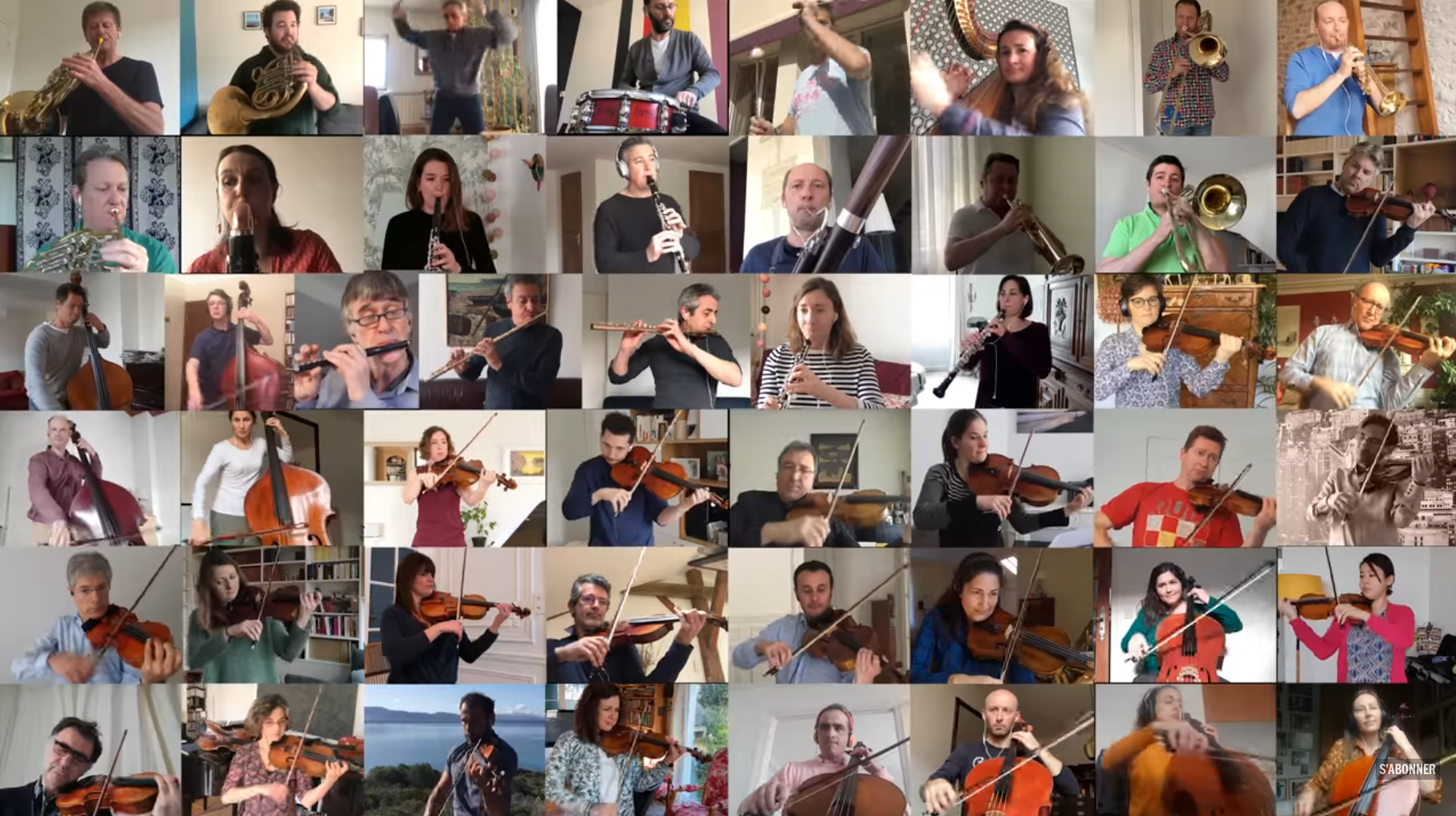 Une performance artistique mais aussi, ne l'oublions pas, aussi technique. Les musiciens apparaissent en mosaïque sur l’écran et donnent l’illusion de jouer tous ensemble. Une belle alternative pour continuer à travailler et à partager leur passion avec les internautes pendant le confinement. Cette vidéo, accessible sur YouTube a été réalisée Dimitri Scapolan et Didier Benetti (arrangement).