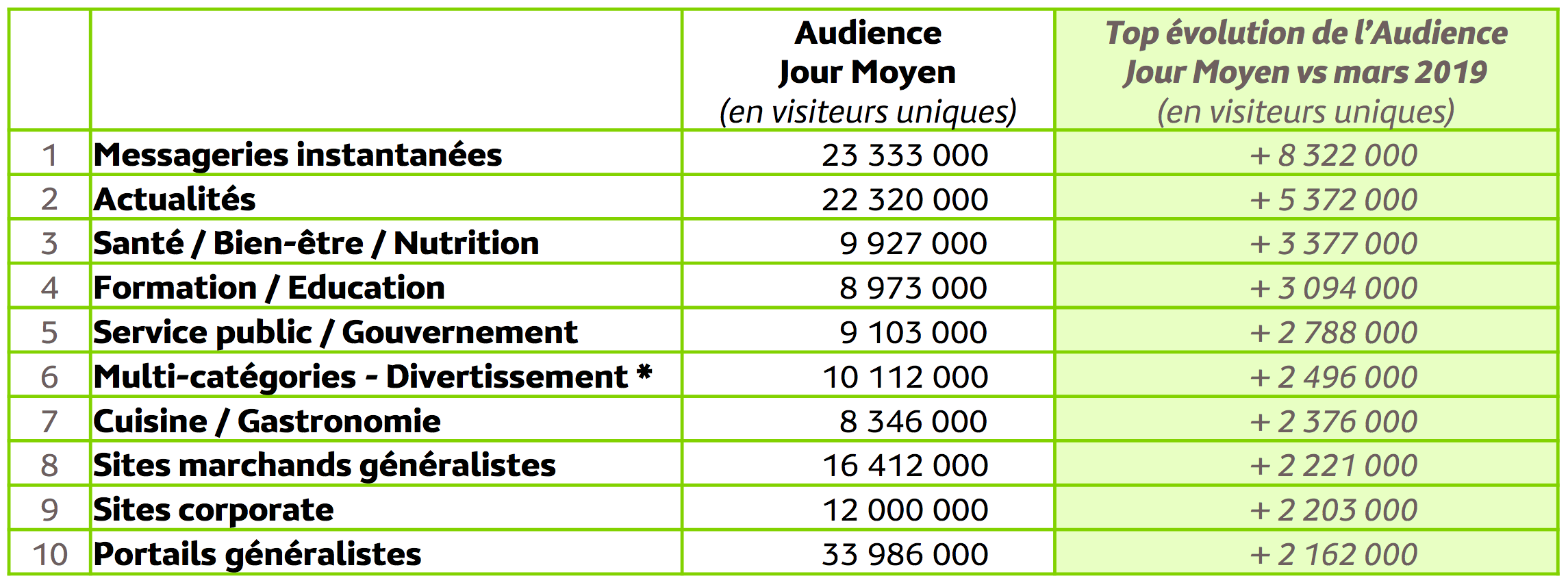 Les activités sur internet qui ont attiré le plus des visiteurs quotidiens supplémentaires sont essentiellement les sites et applications liés à la communication, l’information et l’éducation.