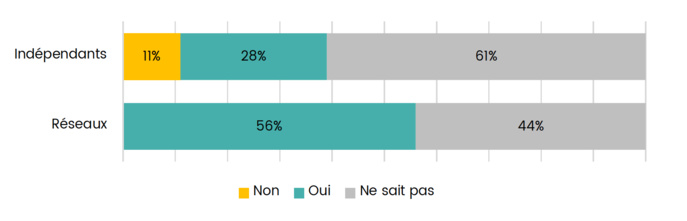 Les radios en réseau, qui sont déjà présentes sur le DAB+, réagissent avec une relative sérénité face à la crise : une très faible majorité (55%) ne prévoit pas d’impact sur la transition numérique, alors qu’à contrario 45% des répondants prévoient des difficultés de financement de la transition vers le DAB+. La transition en elle-même n’est pas remise en question par les répondants.