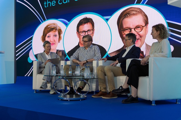 Table ronde au WorldDAB Automotive 2025 à Madrid sur l’avenir de la radio dans les véhicules connectés. Les intervenants ont souligné l’importance d’une accessibilité simple et visible pour la radio sur les interfaces embarquées. Une initiative commune a été lancée pour défendre la place du broadcast. © WorldDAB